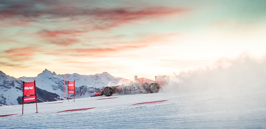 Teden dni pred začtkom najbolj znane smukaške tekme svetovnega pokala, Hahnenkammrennen v mestu Kitzbühel, je Red Bull organiziral posebno predstavitev- Max Verstappen, dirkač ekipe Scuderia Toro Rosso je na snegu vozil dirkalnik in sicer na nadmorski višini 1600 metrov, pri minus 13 stopinjah celziija in z razgledom na Alpe. Dirkalnik je bil opremljen s posebnimi, za ta namen izdelanimi snežnimi verigami, ki so mogočale vožnjo po snegu. Pogledi naključnih smučarjev, ko so iztopili iz nihalke in zagledali dirkalnik Formule 1 na smučišču so izdajali nepričakovanje in navdušenje.